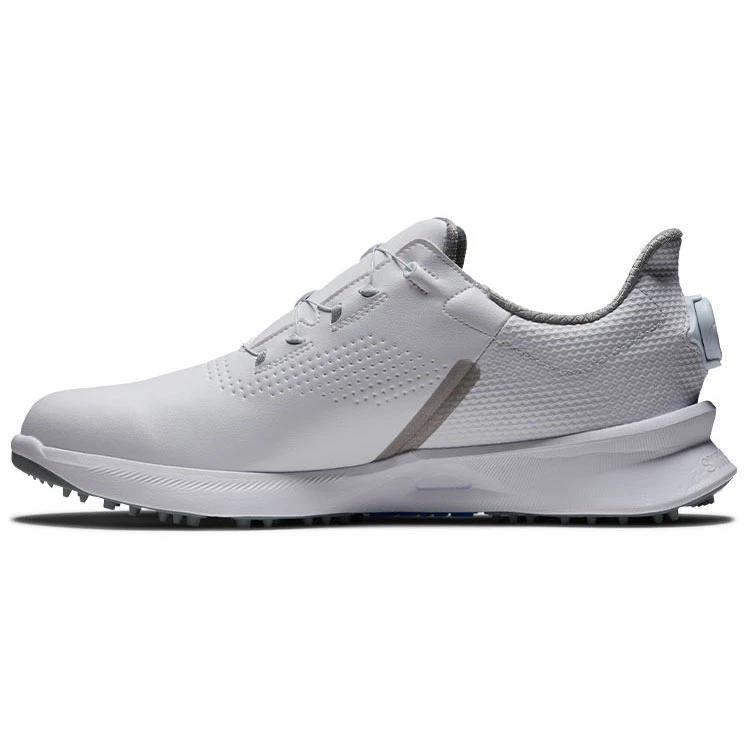 | FootJoy Fuel BOA 55446 Golf Shoes Precision Fitting With BOA Lace System Introducing the new Fuel BOA golf shoes from FootJoy. The players spikeless shoe that combines a streamlined waterproof synthetic upper with a mid-foot bevel and exaggerated platform for a modern and athletic silhouette. Below the silhouette, a combination of the sole – inspired by a Pro SL Outsole – patented mid-foot stability bridge, and Stratolite EVA midsole, revolutionises athletic performance with Tour-proven traction and stability through the swing. 100% waterproof, the synthetic upper is easy to clean with 1 year waterproof protection. The new BOA & Power Harness Custom Fitting Lacing System provides exceptional fit and is easily altered during the round and throughout the life of the shoes. Experience the ultimate in platform stability and athletic styling from the #1 Shoe In Golf. |
