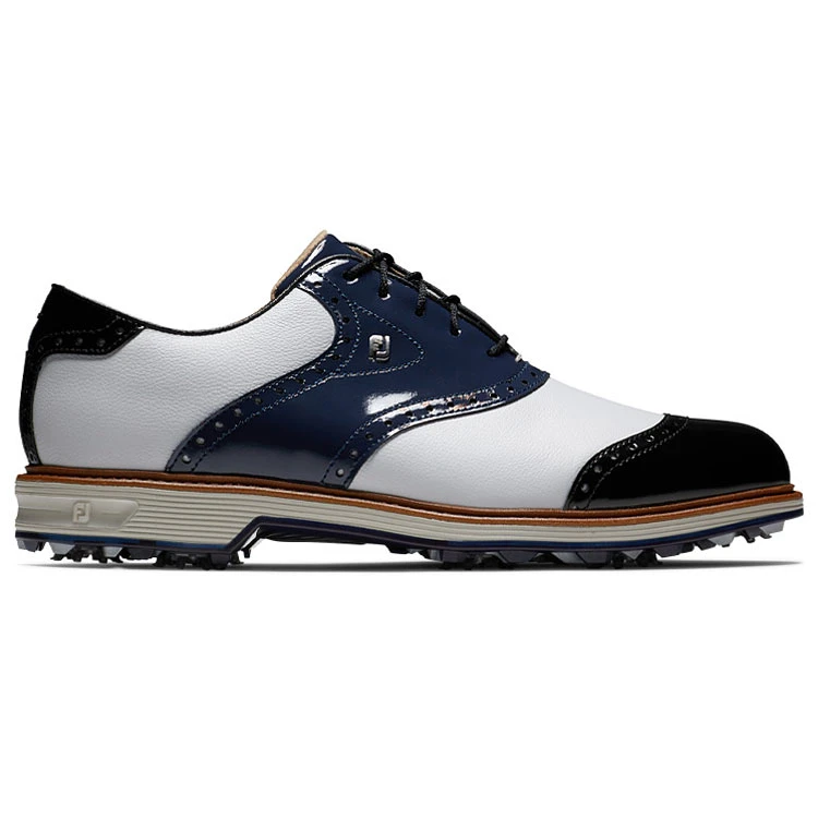 | FootJoy Premiere Series Wilcox 54323 Golf Shoes Very Breathable With Lightweight Protection Introducing FootJoy Premiere Series Golf Shoes, inspired by then but supercharged for now. The Premiere Series begins a new chapter for FJ. A modern reimagining of their rich footwear history, supercharged with technology and innovation, developed with the world’s best players. It sets a new standard in golf footwear with exquisite craftsmanship and premium hand-selected materials form an irresistible silhouette with uncompromising playing comfort. The Wilcox style is powered by revolutionary VersaTrax+ technology with Pulsar low profile cleats, delivering unparalleled traction and stability in every playing condition and on every playing surface. With a Dual Durometer TPU, this outsole is super durable and provides traction for all types of surfaces. For under foot comfort, Ortholite EcoPlush FitBed provides the perfect balanced of stability along with enhanced cushioning for exceptional under-foot comfort. Constructed with a premium upper, they feature Pittard’s leather along with an ultra-soft sheep skin leather liner for enhanced feel and durability. The Premier Series also boasts waterproof protection and comes with a 1 year waterproof warranty. Designed for the modern player, inspired by classic heritage, FootJoy Premier Series shoes offer complete performance and style. |